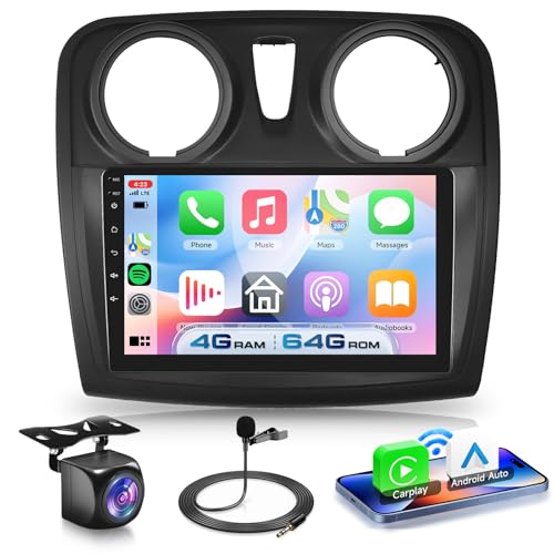 [8 Core 4+64GB] Android 15 Autoradio, Carplay Android Auto Sans Fil, pour Renault Logan 1 Sandero 2009-2015 Largus Dacia Duster Radio, Hikity Écran Tactile 9’’ Bluetooth Stéréo Mirror Link GPS WiFi FM
