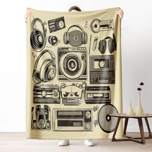 Sshjfeu Couverture Radio Casque Instrument de Musique, Petit Plaid Thème Musical, Couverture 100x150 1 Personne, Plaid Polaire Flanelle Douce et Chaude, pour Jeté de Canapé et Lit, Enfant