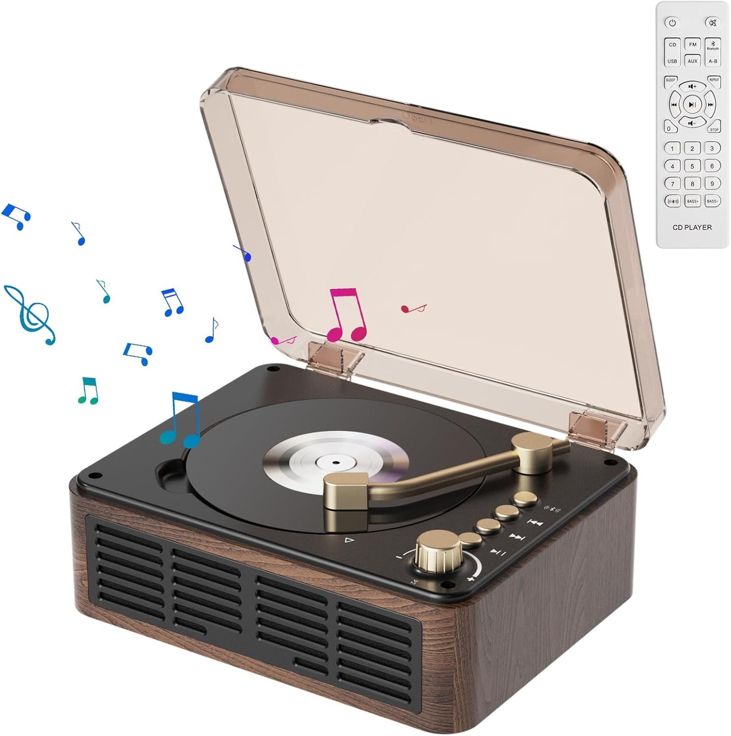 Lecteur de CD Bluetooth Lecteur CD rétro avec Haut-parleurs Lecteur CD Enfant Radio supporte Lecture USB & AUX avec Label
