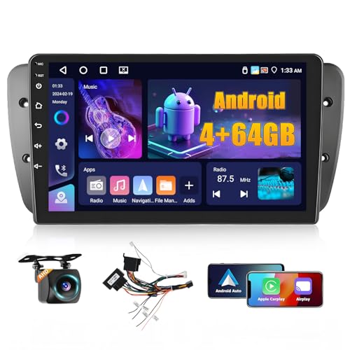 Hikity 4+64GB Android Autoradio pour Seat Ibiza 6J 2009-2013, 9 Pouces écran Wireless Carplay Android Auto Poste Radio Voiture Bluetooth Caméra de Recul,Radio avec GPS WiFi EQ FM RDS