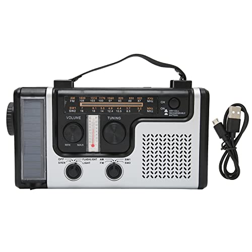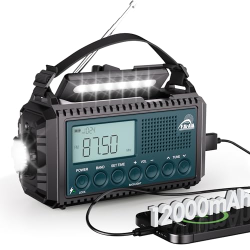 Radio à Manivelle AM/FM/SW avec Batterie Rechargeable 12000mAh, Portable avec Lampe de Poche & Lumière de Lecture, Urgence Type C, SOS Alarme Dynamo pour la Randonnée, Camping