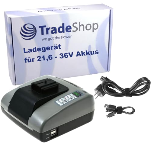 Trade-Shop Chargeur 21,6 V-36 V avec USB compatible avec Milwaukee M28B, M28BX, MC 28, 4933416345 C12-28 DCR 0 version réseau/radio batterie, Flex 28 V