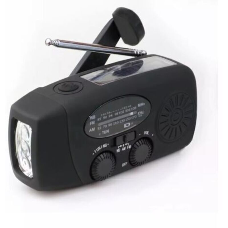 Radio Pile Solaire Dynamo Portable 2000mAh Kit Survie Complet AM/FM Lampe Torche SOS Powerbank Idéale Camping Randonnée (Noir)