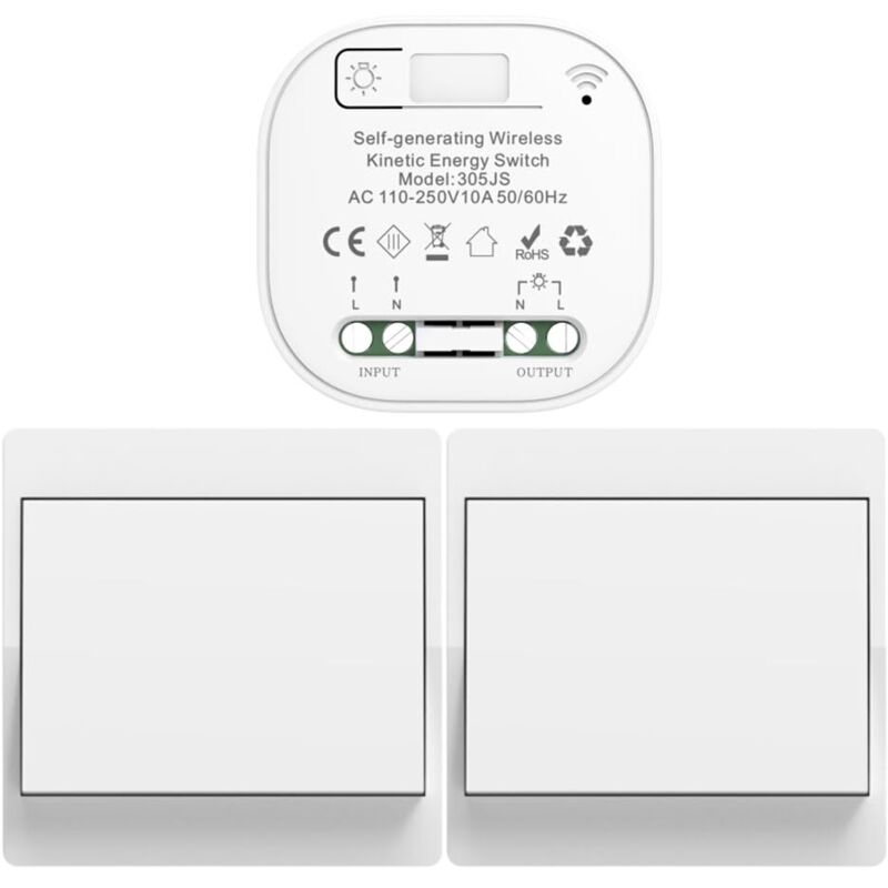 EU interrupteur sans fil sans piles Lot de 2 kit interupteur sans fil autoalimente va et vient sans fil sans pile radio interrupteur a distance
