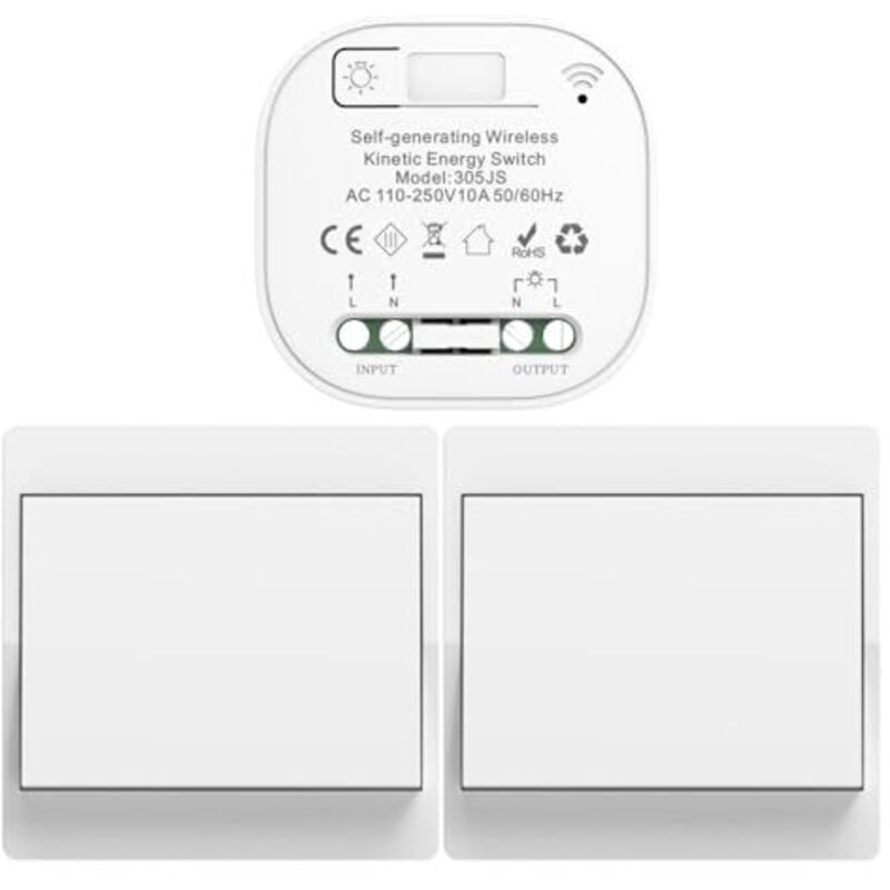 EU interrupteur sans fil sans piles Lot de 2 kit interrupteur sans fil autoalimente va et vient sans fil sans pile radio interrupteur a distance