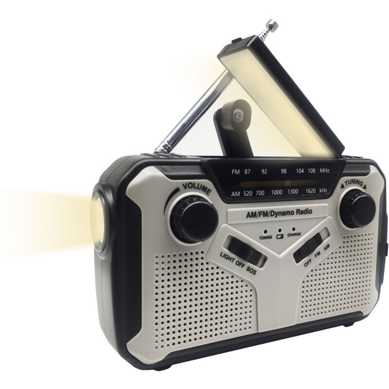 Portable Radio Dynamo Survie, AM/FM Radio à Pile avec 3000mAh Power Bank/SOS Alarm/Lampe Poch/Panneau Solaire, Haut-parleurs, Ourdoor, Emergency.