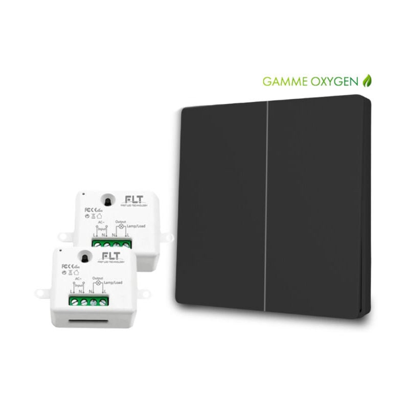 Fast Led Technology - Kit interrupteur va et vient sans fil et sans pile radio - Auto alimenté piézoélectrique - 4 boutons double allumage + 2