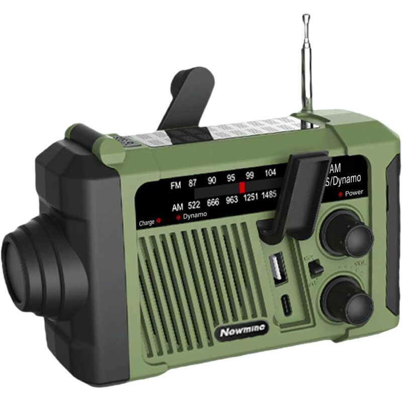Portable Radio Dynamo Survie, PRUNUS J-369 AM/FM Radio à Pile avec 3000mAh Power Bank/SOS Alarm/Lampe Poch/Panneau Solaire, Haut-parleurs, Ourdoor, Emergency (Vert)