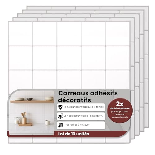 AMARA DECO - 10 Pièces Carrelage Adhésif Mural Salle de Bain & Cuisine 30x30cm. Crédence Adhésive pour Cuisine, Effet Carrelage Authentique 3D, Résistant à la Chaleur et Facile à Nettoyer (Oxford)