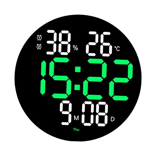 SM SunniMix 25 Cm Pendules Murales, Horloge Radio Pilotée, Horloge Digitale, Horloge Salle De Bain, Horloge Murale Télécommandée D'horloge électronique De LED pour Décorations à La Maison, Vert