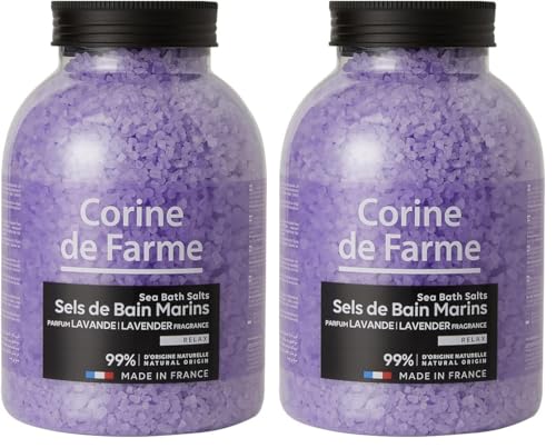 Corine de Farme Sels de Bain Relax Lavande - Sels Marins Aromatisés à la Lavande - Dissolution Rapide, Vertus Apaisantes et Adoucissantes - Pour Salle de Bain ou Spa - Grand Bocal 1.3kg (Lot de 2)