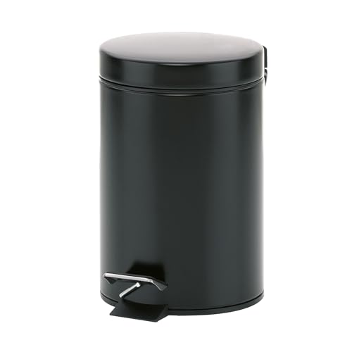 kela Seau à cosmétique noir 3l, poubelle à pédale en métal pour la salle de bain, poubelle de salle de bain avec seau intérieur et anse, MONACO, poubelle noire mate