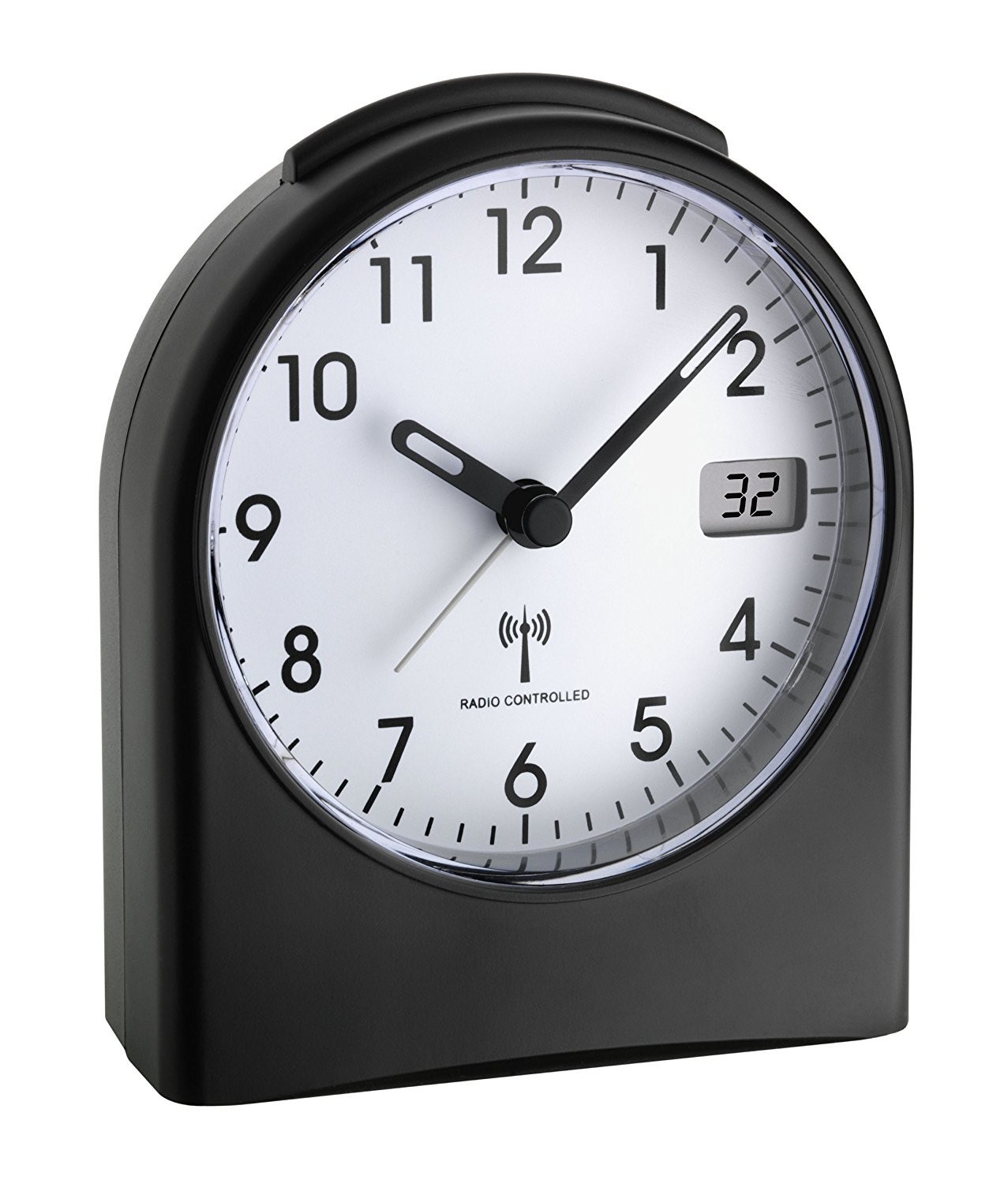 TFA Dostmann Réveil Combo, 60.1511.01.05, Horloge Radio-pilotée analogique avec fuseaux, Heure de réveil-numérique, particulièrement réveille-Matin Silencieux, rétroéclairage, Noir-Rouge
