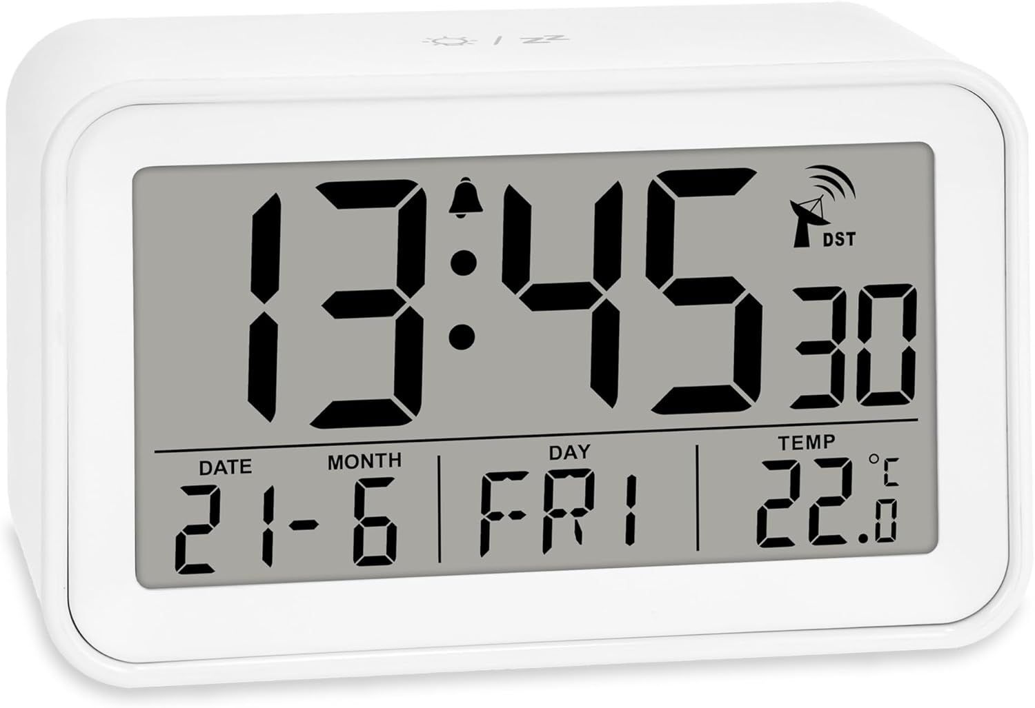 Reveil Matin Radio Pilotée | Horloge Numérique | Reveil De Voyage | Affichage De La Température Et Le Date | Joli Boîtier Blanc Mat | Avec Pile
