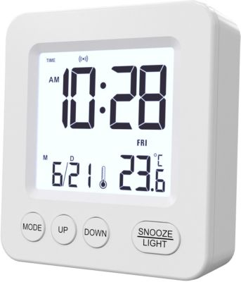 Horloge numérique a Piles|reveil Radio piloté avec 2 Heures de réveil|Affichage de la température e humidité|réveil de Voyage|Fonction Snooze|Blanc