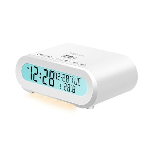 Logilink SC0121W Radio-réveil avec Affichage de la température, minuterie d'endormissement, avec Port USB pour recharger par Exemple téléphone Portable/Tablette/liseuse