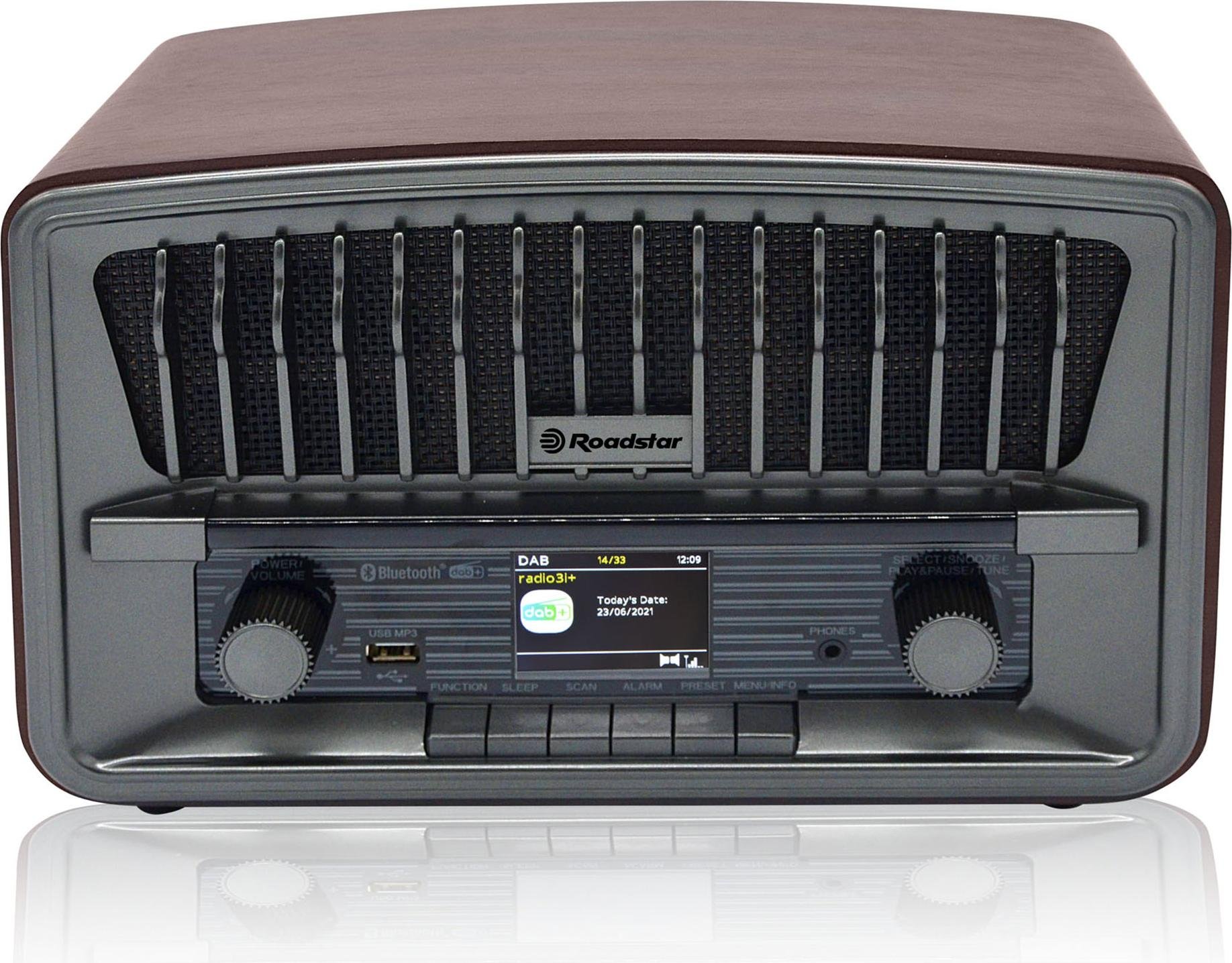 Radio Numérique Portable Vintage DAB+/FM Bluetooth USB, Stéréo, Double Réveil, , Bois, Roadstar, HRA-270D+BT
