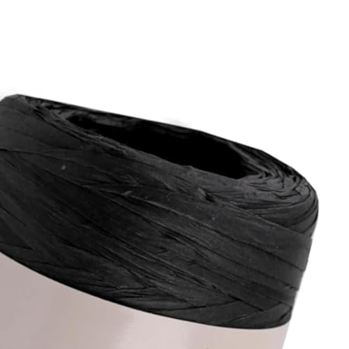 cyclingcolors 1x Ruban Papier Raphia 5-8 mm 100 m Tricot Chapeau Sac Composition Florale Décoration Couture Rafia Raffia, Noir