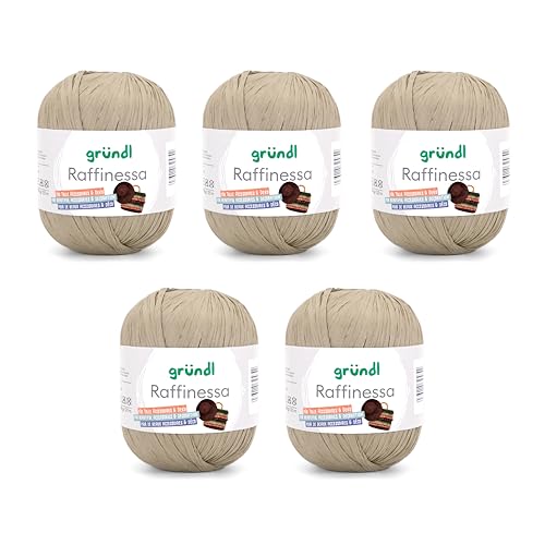 Gründl Raffinessa - Fil de papier - Raffia - Fil en papier 100% viscose - Pour le tressage de l'osier - 5 x 100 g/120 m - Beige