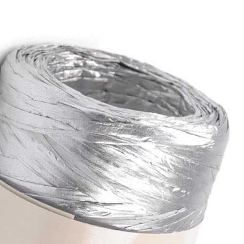 cyclingcolors 1x Ruban Papier Raphia 5-8 mm 100 m Tricot Chapeau Sac Composition Florale Décoration Couture Rafia Raffia, Argent métallique