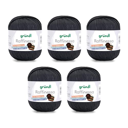 Gründl Raffinessa - Fil de papier - Raffia - Fil en papier 100% viscose pour le tressage de l'osier - 5 x 100 g/120 m - Noir