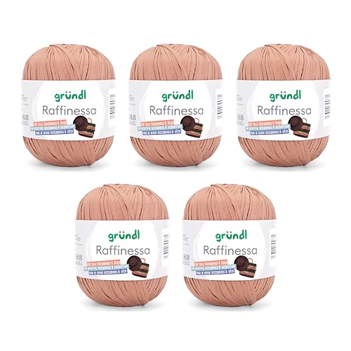 Gründl Raffinessa - Fil de papier - Raffia - Fil en papier 100% viscose pour le tressage de l'osier - 5 x 100 g/120 m - Marron clair