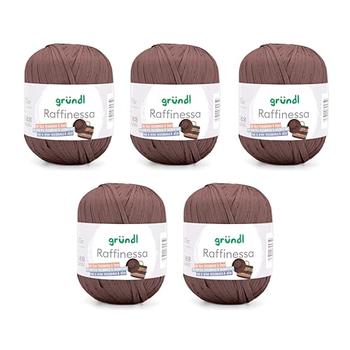 Gründl Raffinessa - Fil de papier - Raffia - Fil en papier 100% viscose pour le tressage de l'osier - 5 x 100 g/120 m - Chocolat