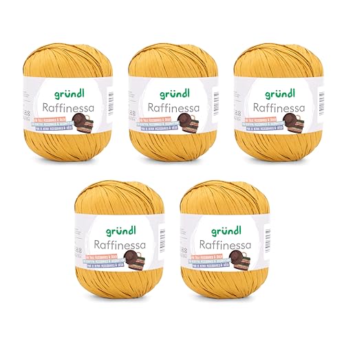 Gründl Raffinessa - Fil de papier - Raffia - Fil en papier 100% viscose pour le tressage de l'osier - 5 x 100 g/120 m - Jaune
