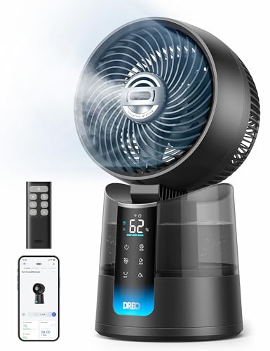 DREO TurboCool Ventilateur 516S, ventilateur de table oscillation 150° + 30°, rafraîchisseur d’air 7,9 m/s, brume ultrafine, silencieux 20 dB, 6 vitesses, 2 modes, contrôle app & télécommande.