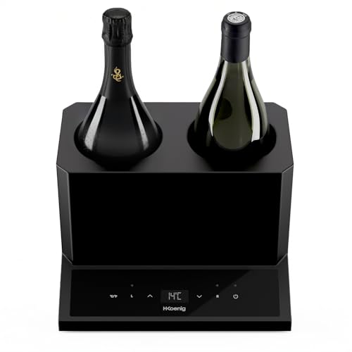 H.Koenig Rafraichisseur à Vin LVX28, 2 bouteilles, Vin Blanc, Vin Rouge, Rosé, Champagne, Jusqu'à 9cm de Diamètre, Température Réglable de 5°C à 18°C, Contrôle Digital, Système Thermoélectrique, 87W