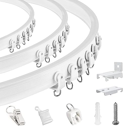 TOKPLNU Rail de rideau de plafond pliable pour baie vitrée, 4,26 m incurvé et flexible, montage au plafond ou au mur, rails de rideaux et raccords robustes pour camping-car, lit superposé et