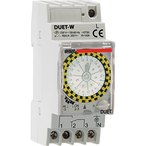 VEMER VE125100 Duet-W - Interrupteur Horaire Électromécanique, Programmation Hebdomadaire, Installation Rail DIN, Gris