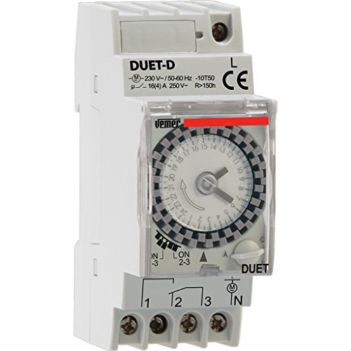 VEMER VP879100 Duet-D – Interrupteur Horaire électromécanique, Minuterie Journalière Programmable, 2 Modules DIN, Relais 16A, 230V, Installation Rail DIN, Gris