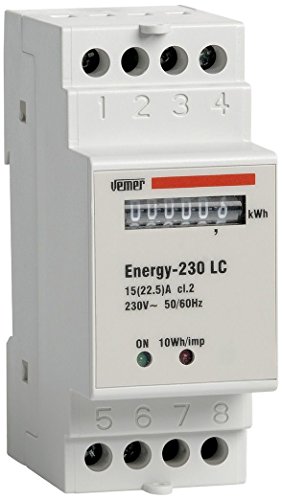 VEMER VN960100 ENERGY-230 LC - Compteur d'énergie électromécanique pour Systèmes Monophasés, Installation sur rail DIN, Blanc