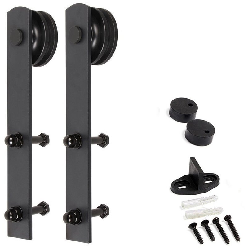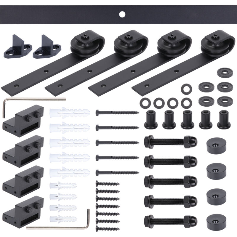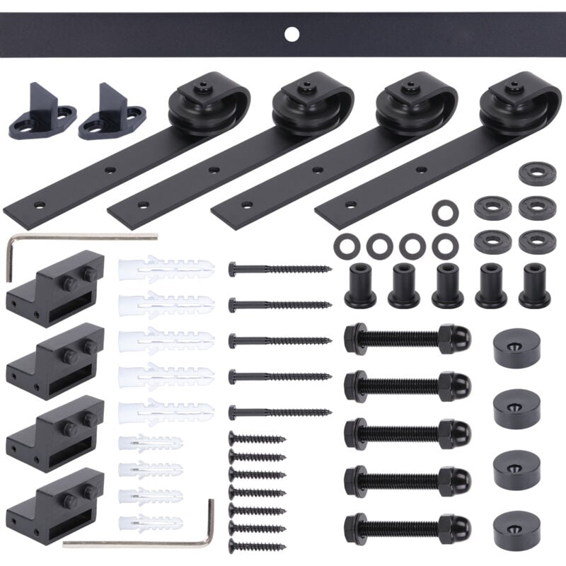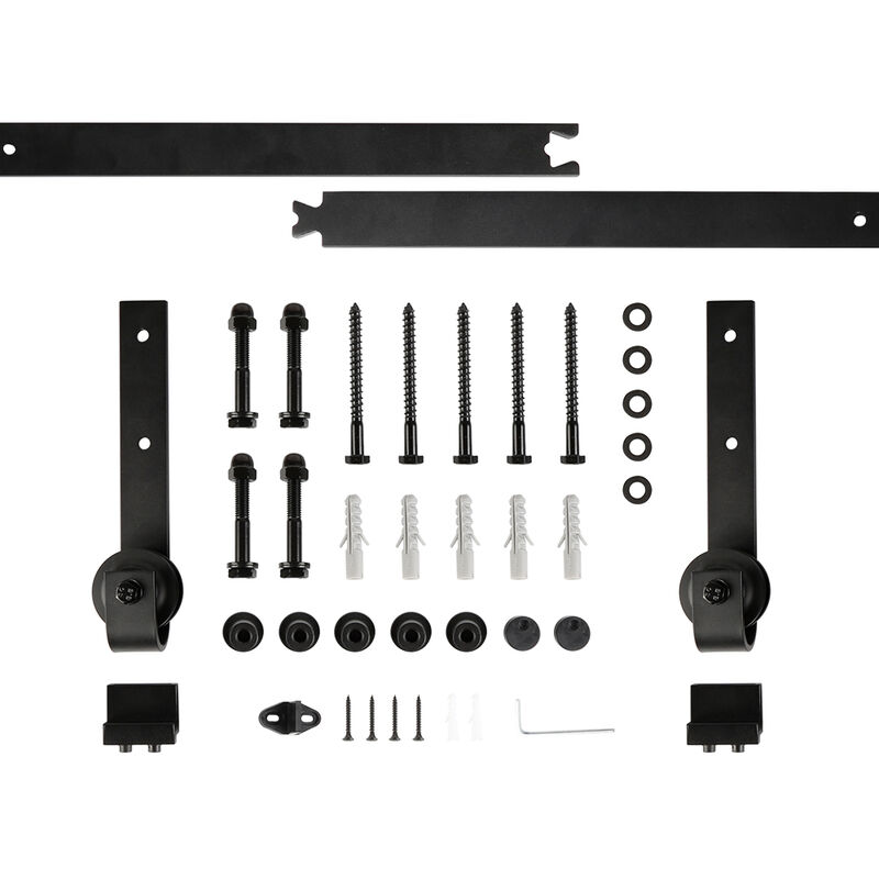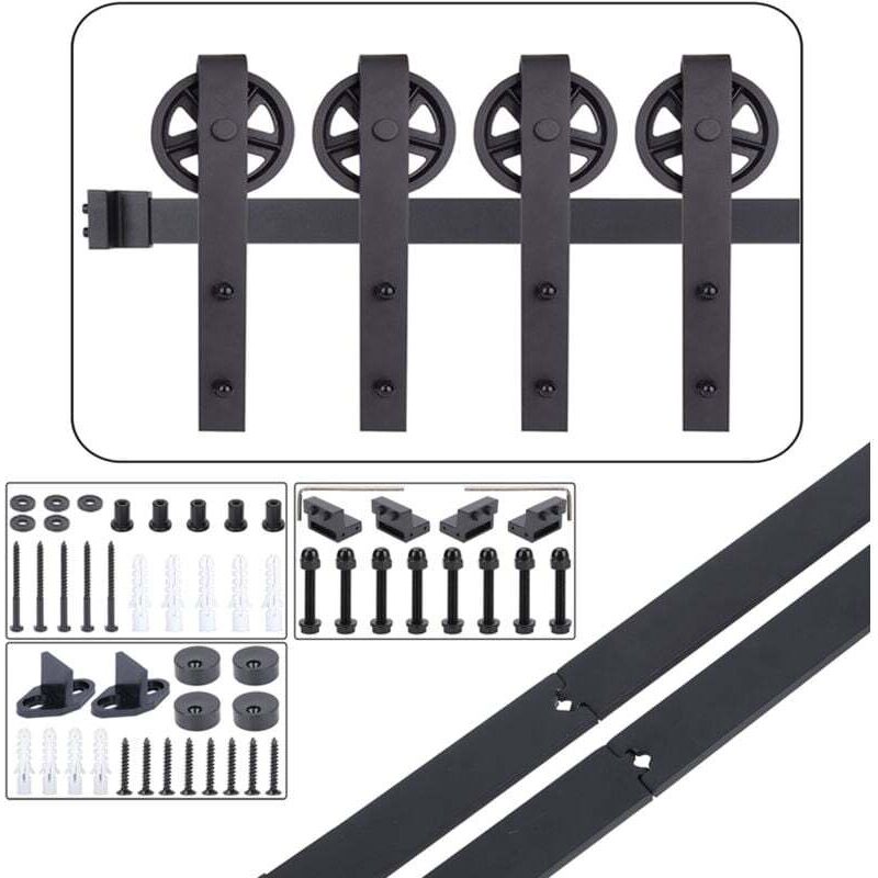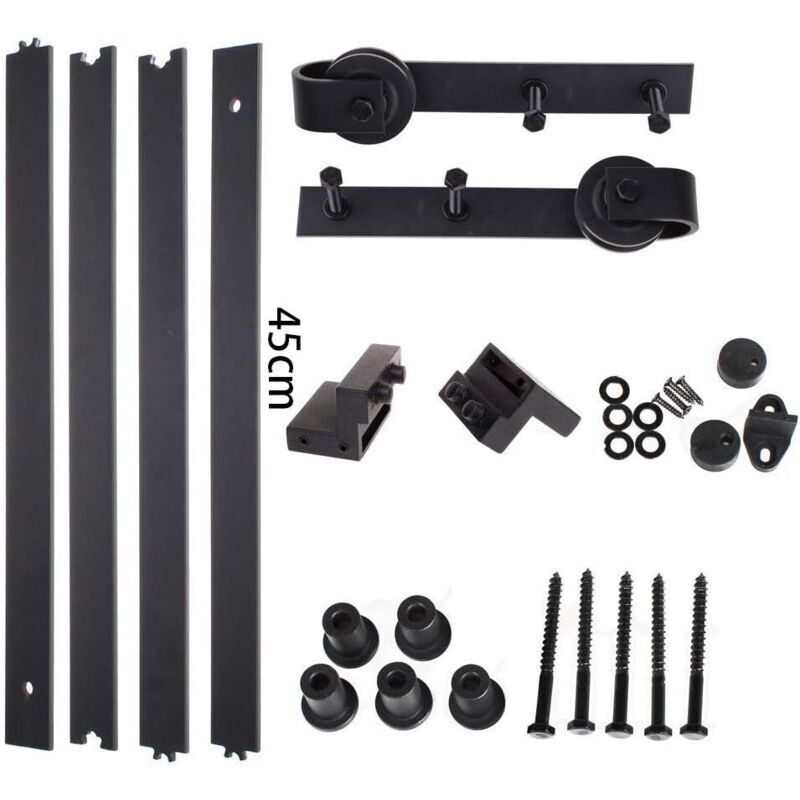 Kit de quincaillerie pour porte coulissante de grange, rail pour porte simple, double ou bypass, en acier robuste.
