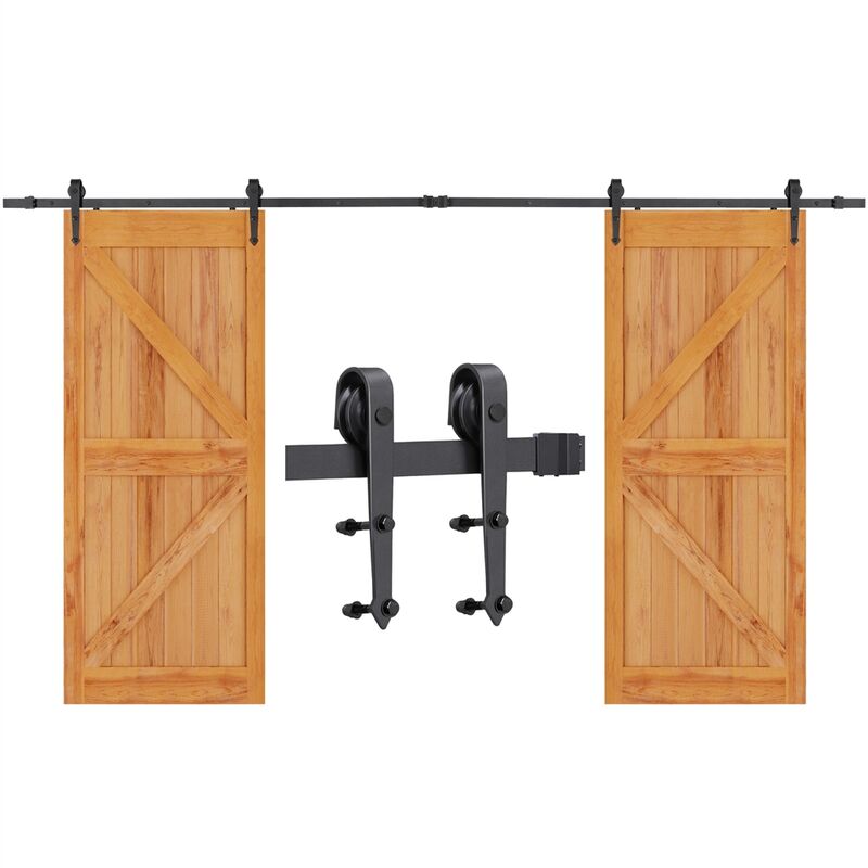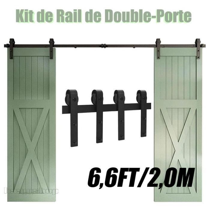 LEYSHOP 200cm-66FT ft Kit de Rail de Double-Porte Coulissante Suspendu Quincaillerie Kit de Rail Suspendue Porte de Grange