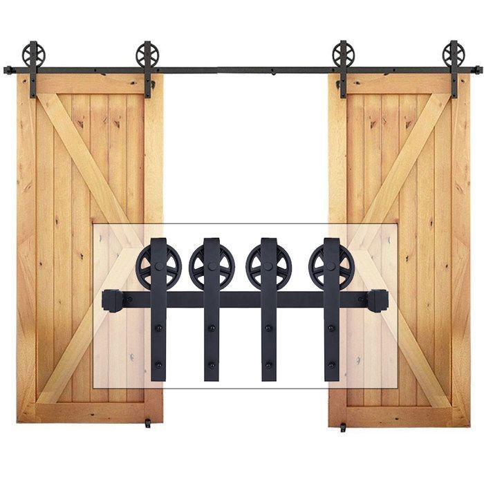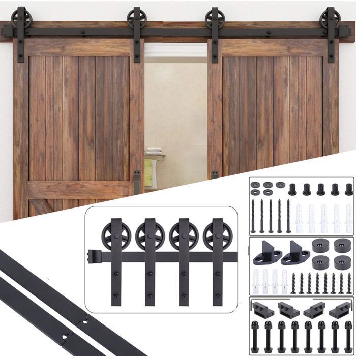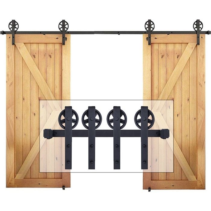 LEYSHOP 200cm -66FT Kit de Rail de Double-Porte Coulissante Suspendu - Quincaillerie Kit de Rail Suspendue Porte de Grange