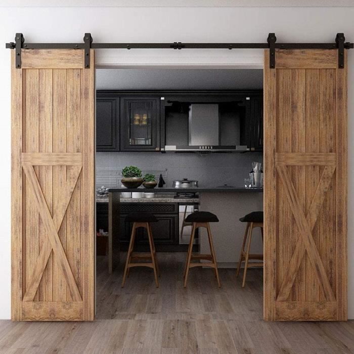 SNOGOLD 1.83M Ensemble Kit de Rail Porte Coulissante Quincaillerie Systeme pour Double Porte Bois Suspendue Industriel 6FT