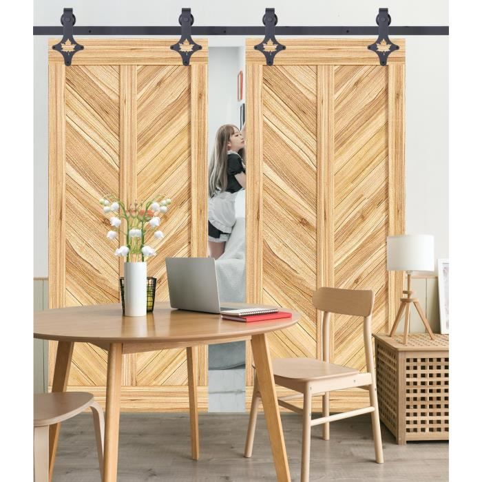 Quincaillerie Kit de Rail pour Porte Coulissante - OUII - Rail Coulissante à Double Porte pour Porte Suspendue en Bois 2.44M-8FT