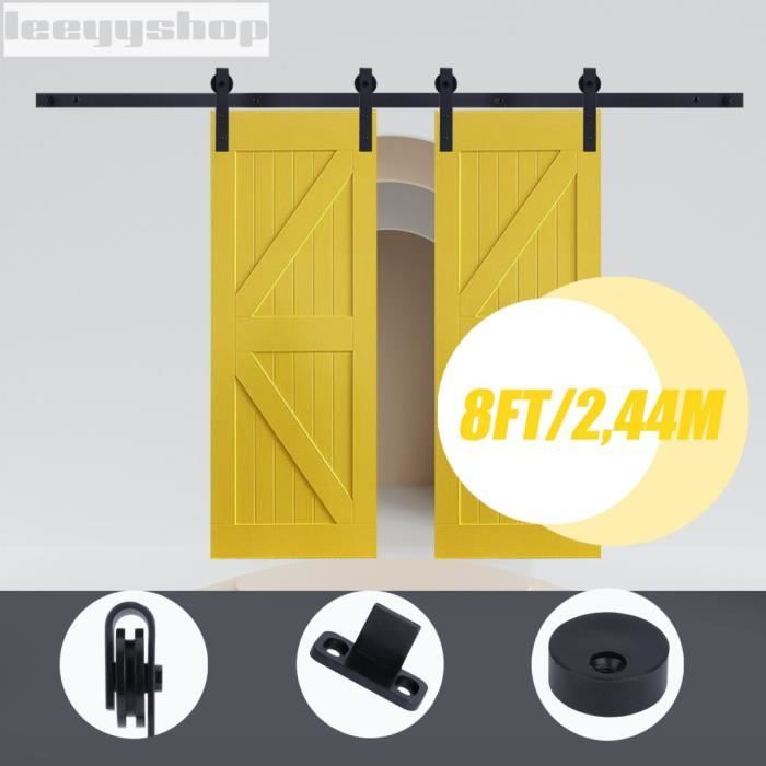 LEYSHOP 244cm -8FT Kit de Rail de Double-Porte Coulissante Suspendu - Quincaillerie Kit de Rail Suspendue Porte de Grange