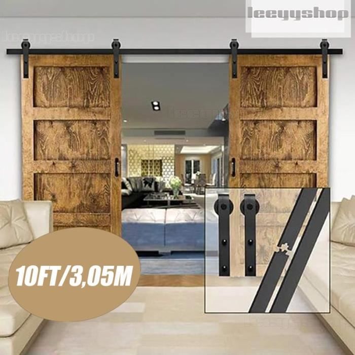 LEYSHOP 305M Kit de Rail de Double-Porte Coulissante Suspendu 10FT Quincaillerie Rail Suspendue pour Porte de Grange