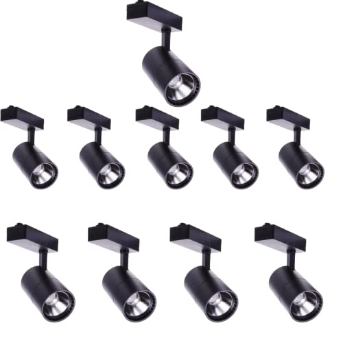 JANDEI - Pack x10 Spots Plafond LED Rail 40W, Lumière Froide 6000K, 2700 Lumens, 220V 50-60Hz Monophasé, Aluminium pour Dressing, Vitrine, Magasin, Bureau. (Noir)