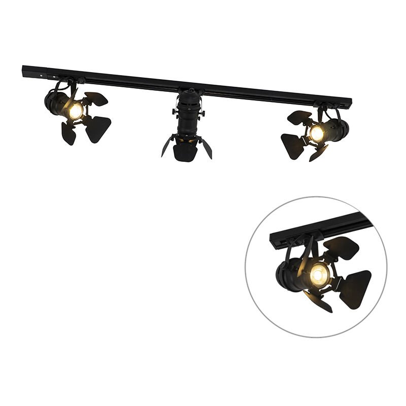 Qazqa movie - Système sur rail spot luminaire plafond, plafonnier compatible pour led - 3 lumière - L 100 cm - Noir - Moderne - éclairage intérieur - Salon I Chambre I Cuisine I Salle à manger