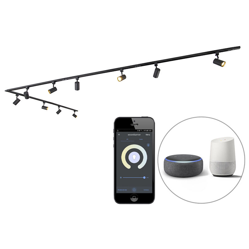 Iconic - Système de rail spot luminaire plafond, plafonnier compatible pour led - 6 lumière - l 320 cm - Noir - Moderne - éclairage intérieur - Salon