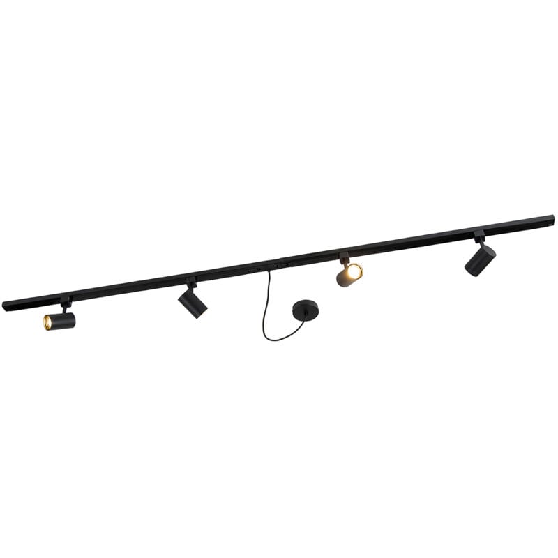 Jeana - Système sur rail spot luminaire plafond, plafonnier compatible pour led - 4 lumière - l 200 cm - Noir - Moderne - éclairage intérieur - Salon