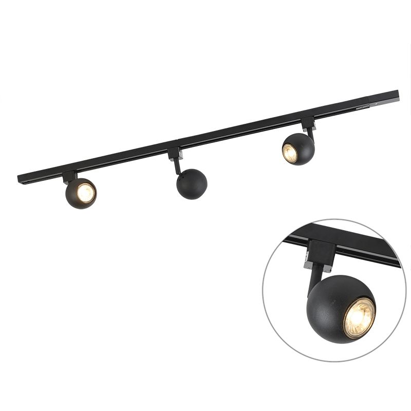 QAZQA jeana - Système de rail spot luminaire plafond, plafonnier compatible pour led - 1 lumière - Ø 6 cm - Noir - Moderne - éclairage intérieur