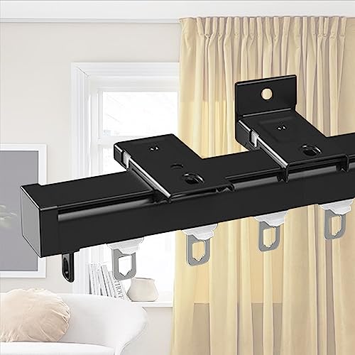 Deco-Raum Rail de rideau sur mesure en aluminium pré-percé - Fixation au plafond pour rideau coulissant, rideau avec matériel de fixation - Noir - 310 cm