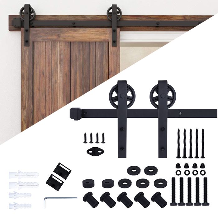6FT/183CM Systeme Porte Coulissante,Quincailleri Kit de Rail pour Porte Coulissante, Ensemble Industriel pour Porte Coulissante Interieur, Améliorer