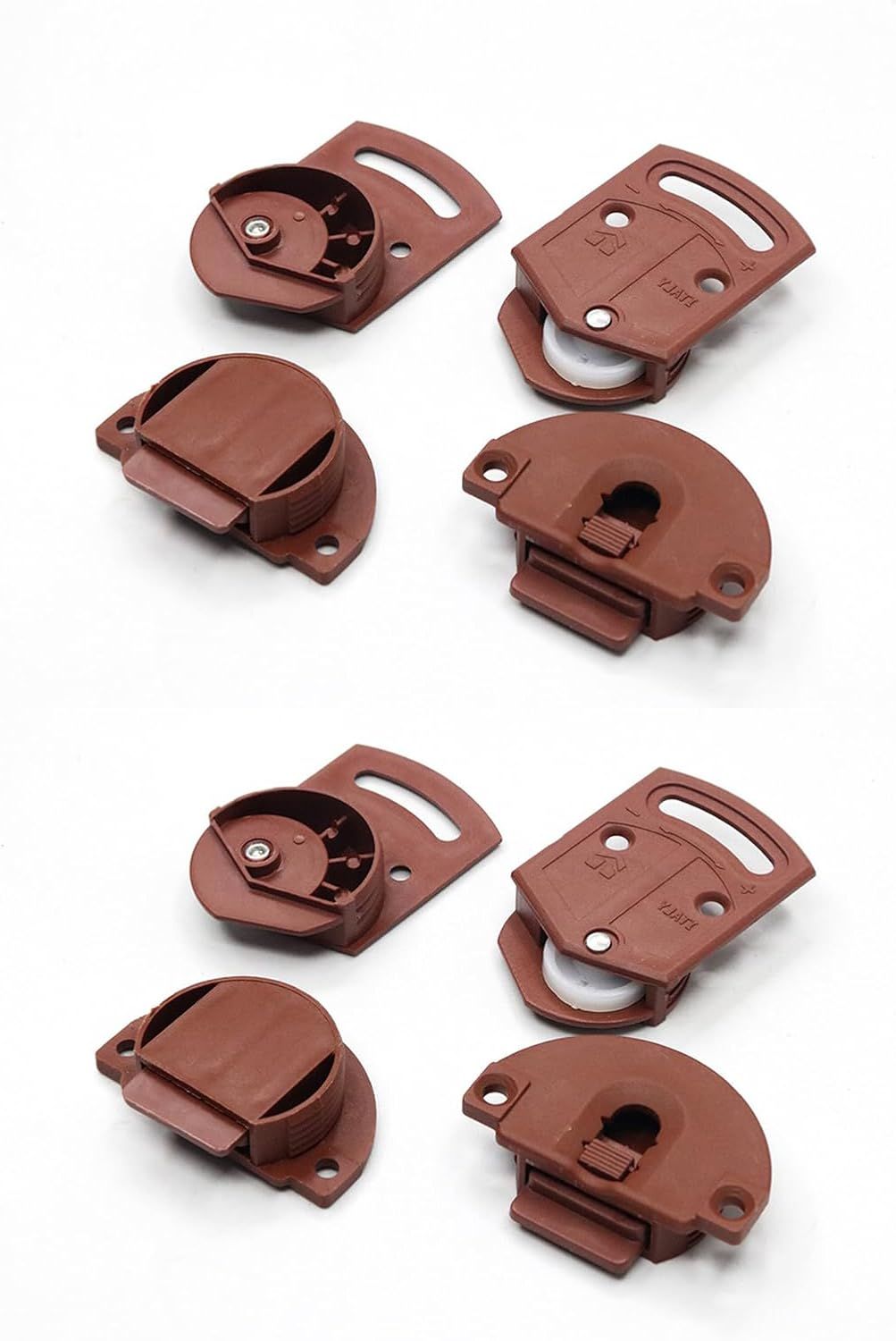 Lot De 4 Paires (8 Unités) Avec Guide Rail En Plastique Brun. Roulette Placard Porte Coulissante Armoire. Système Coulissant Intégré Pour Meuble Encastré