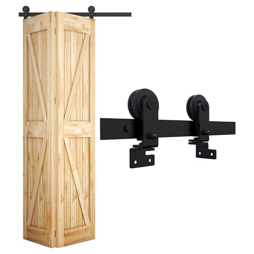 SNOGOLD 1.83M Quincaillerie Kit de Rail Roulette pour Porte Coulissante Hardware Ensemble Industriel de Simple Porte Suspendue 6FT